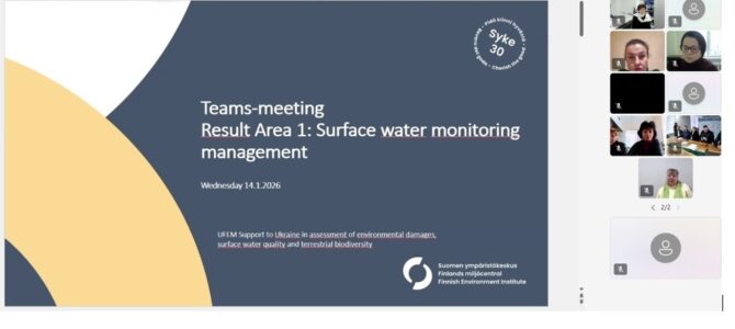Участь у онлайн-зустрічі в рамках реалізації українсько-фінського проєкту «Підтримка України в оцінці шкоди довкіллю та розвитку моніторингу якості поверхневих вод і біорізноманіття»