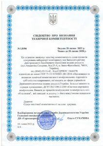 Для дослідження якості води питної лабораторія моніторингу вод Західного регіону підтвердила технічну компетентність щодо процесів вимірювань відповідно до вимог СОУ 71.12-32765831-001:2016 «Оцінювання та визнання технічної компетентності вимірювальних підрозділів суб’єктів господарювання, які входять до сфери управління Державного агентства. Загальні вимоги та порядок проведення», ДСТУ ISO 10012:2005 «Системи керування вимірюванням. Вимоги до процесів вимірювання та вимірювального обладнання».