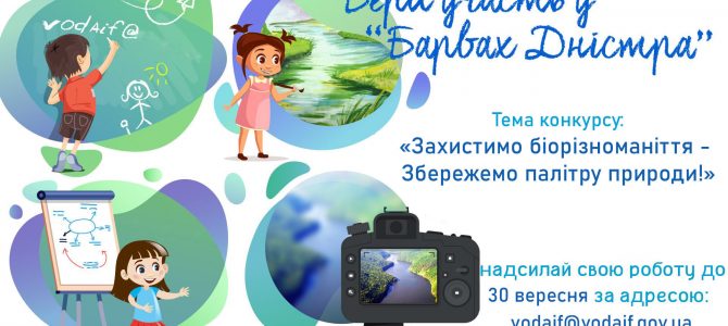 До завершення ХІІ Міжнародного басейнового конкурсу «Барви Дністра», який проходить під девізом «Захистимо біорізноманіття – Збережемо палітру природи!» залишилось дуже мало часу, а ви досі не прислали нам свою роботу? … Читати далі Увага! Конкурсні роботи для участі у «Барвах Дністра» приймаються до 30 вересня 2021 року